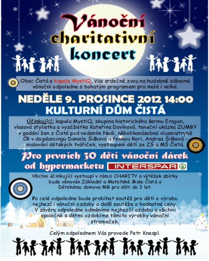 V prosinci 2012 kapela MystiQ ve spolupráci s Obecním úřadem Čistá uspořádala historicky 1. Vánoční charitativní koncert v proslulém Kulturním domě Čistá věnovaný dětem.